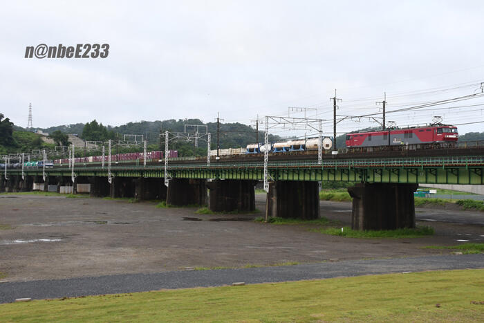 多摩川橋梁で貨物列車のチェイスが見られるのも