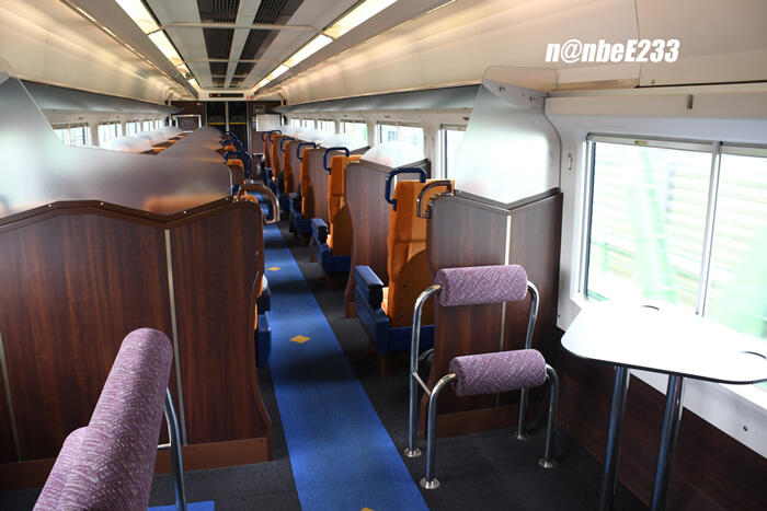 1号車(クロE652-1008)に入るとラウンジがお出迎え...。