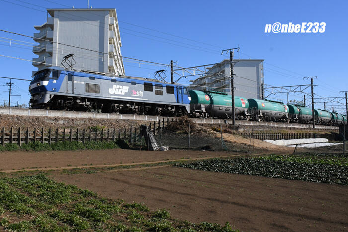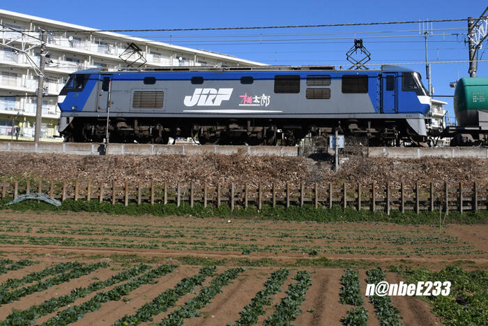 過渡期の機関車で、旧塗装ながらJRFのロゴが無いのが特徴ですネ^^
